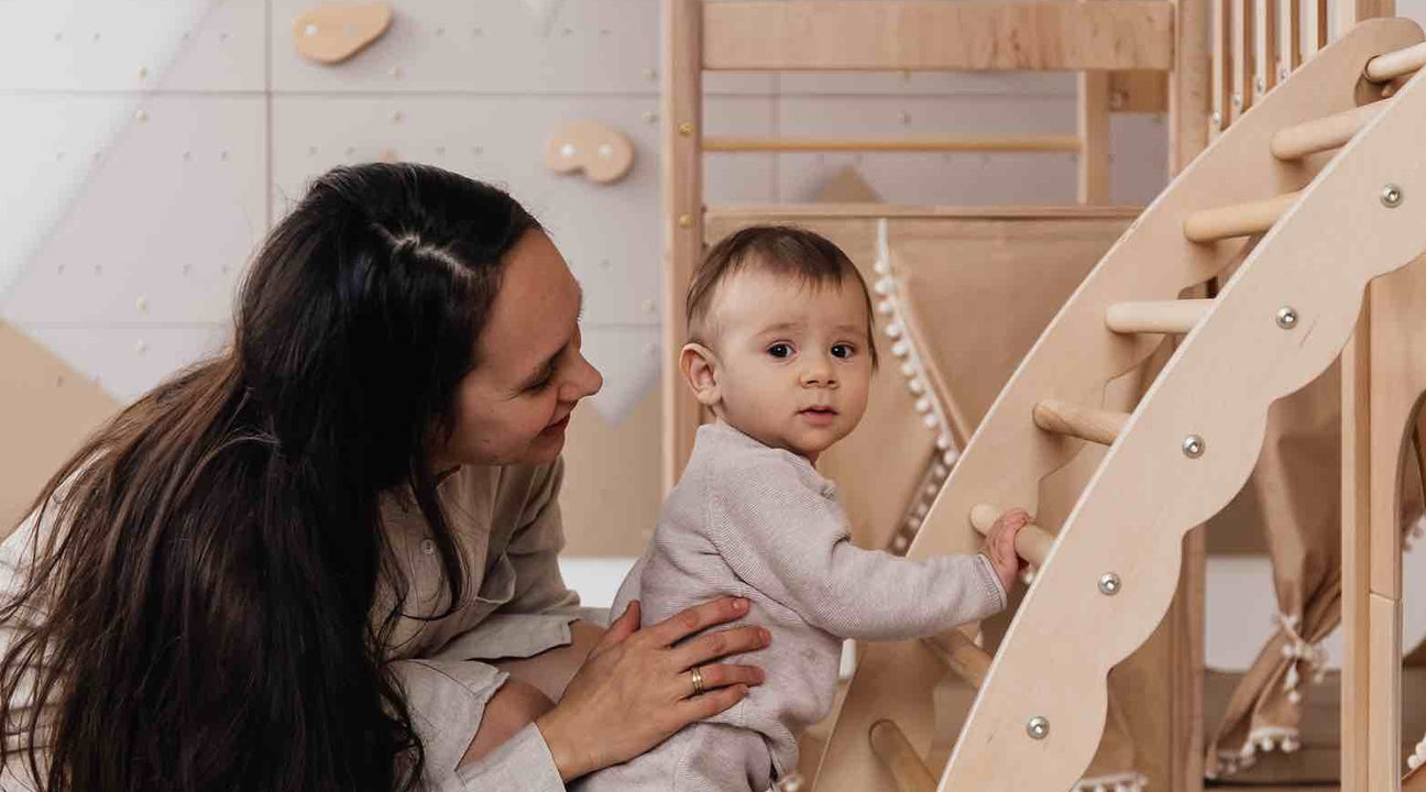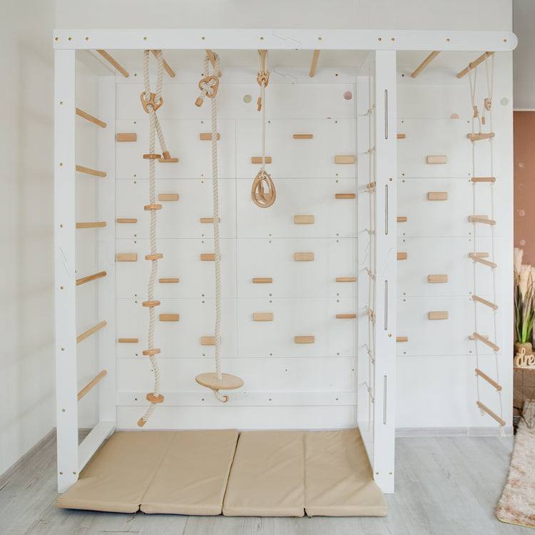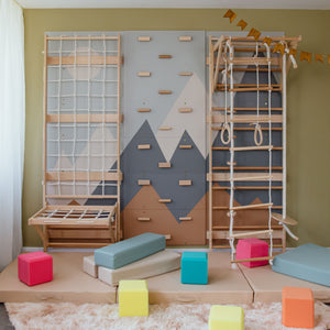 Our furniture follows the educational methods of the Italian educator and doctor Maria Montessori, creator of the child growth strategy that is now gaining popularity in children's educational centers and among modern parents. The idea of using this furniture is to create a unique environment that promotes the development of the little one. The child plays practices gymnastics and has fun.