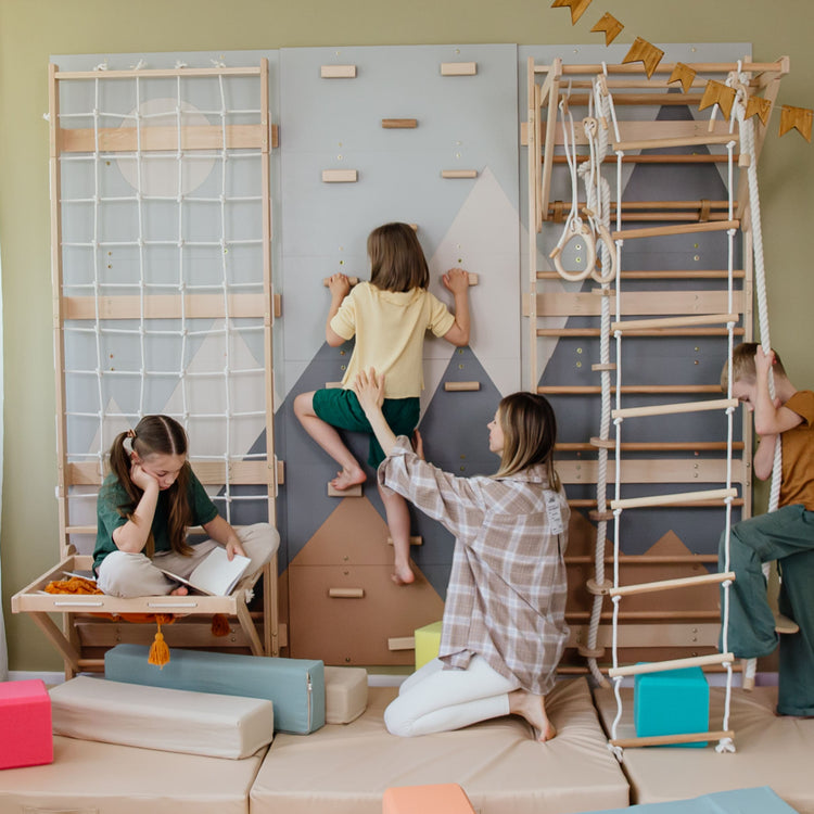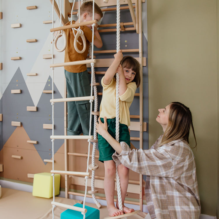 To train focus or, conversely, relax a child to reduce daily tension before sleep, multifunctional climbing sets like the Swedish Ladder Gym or Wooden Playground are excellent choices.