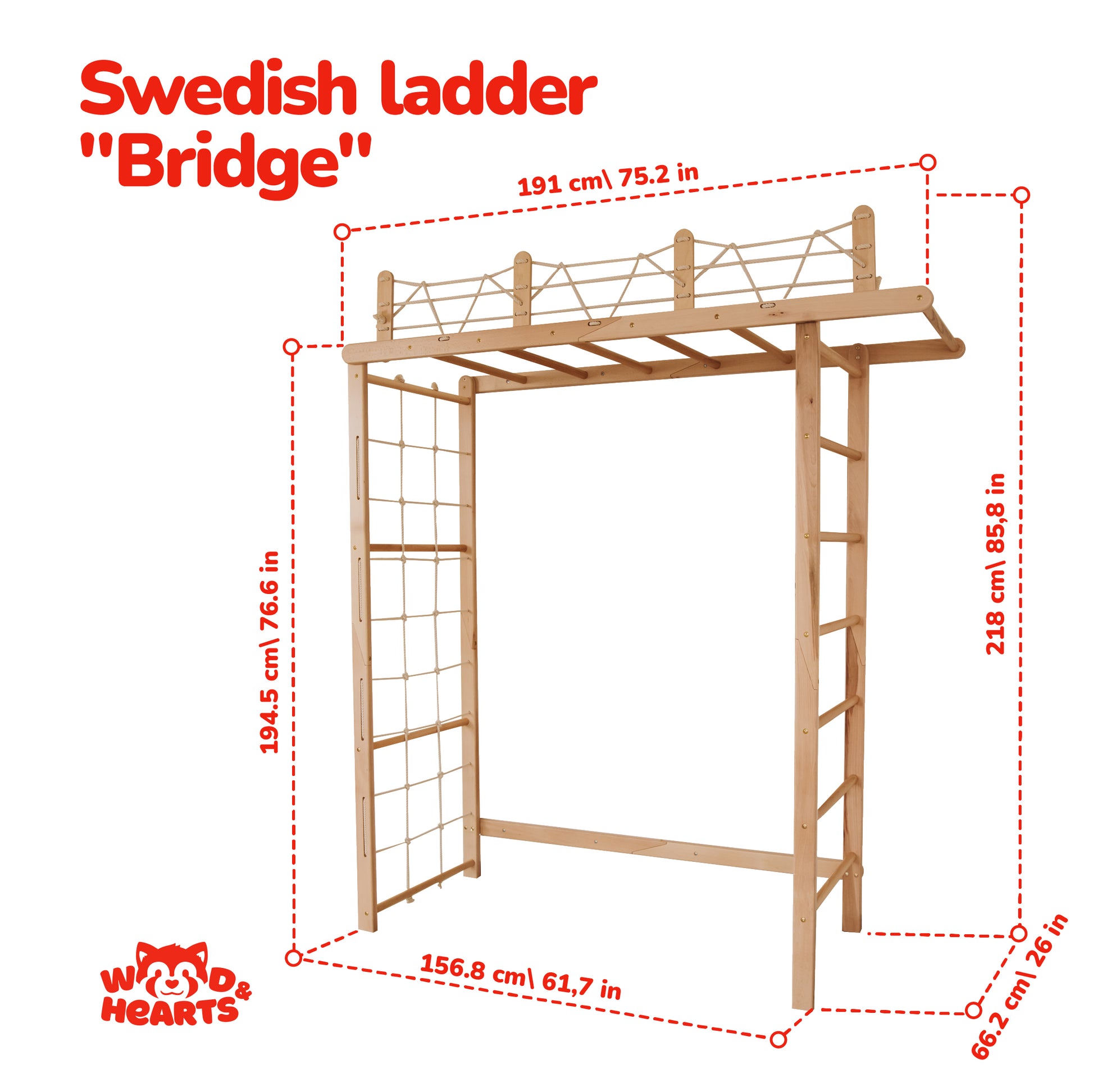 Climbing Monkey Bars (White + Natural Wood color)A versatile climbing frame featuring: