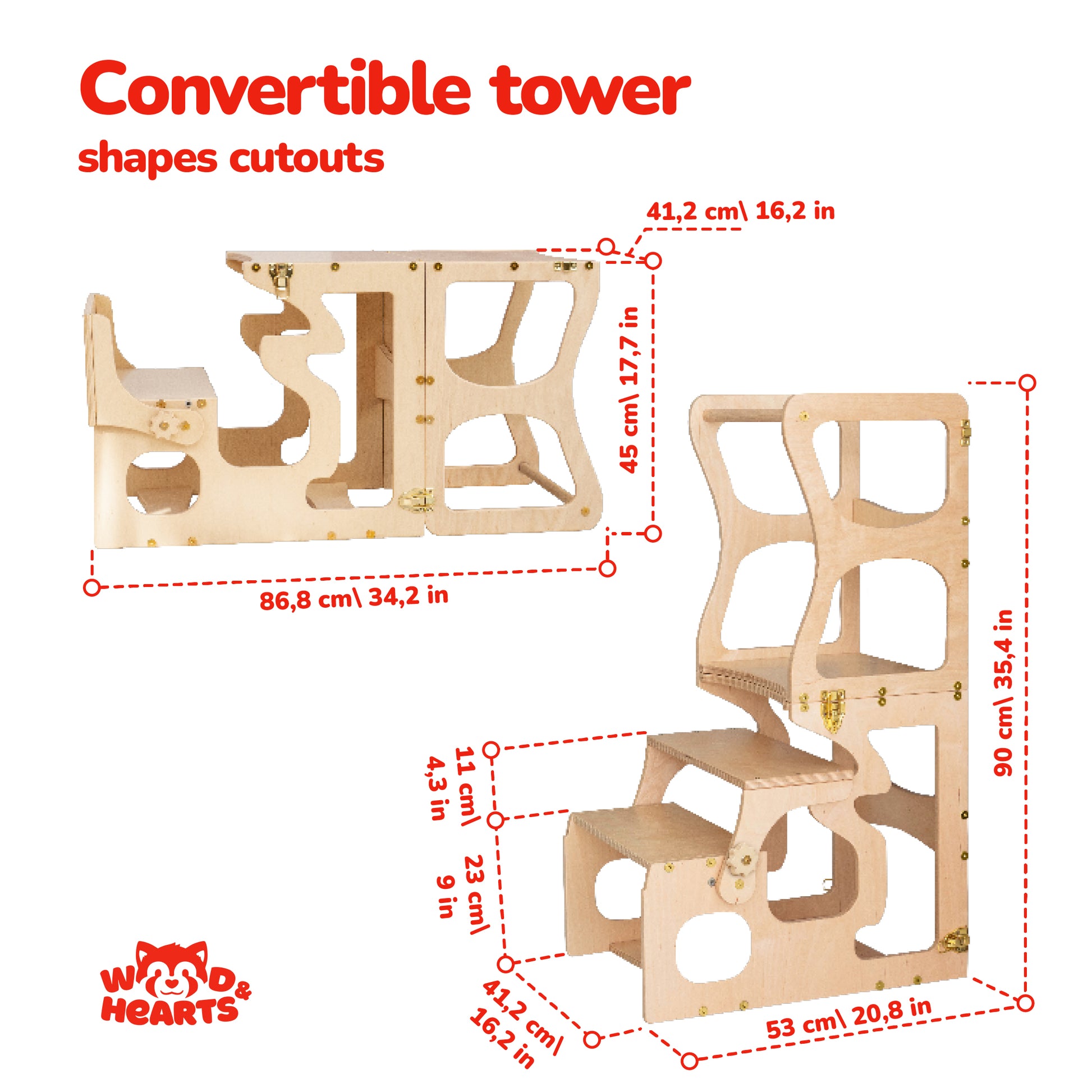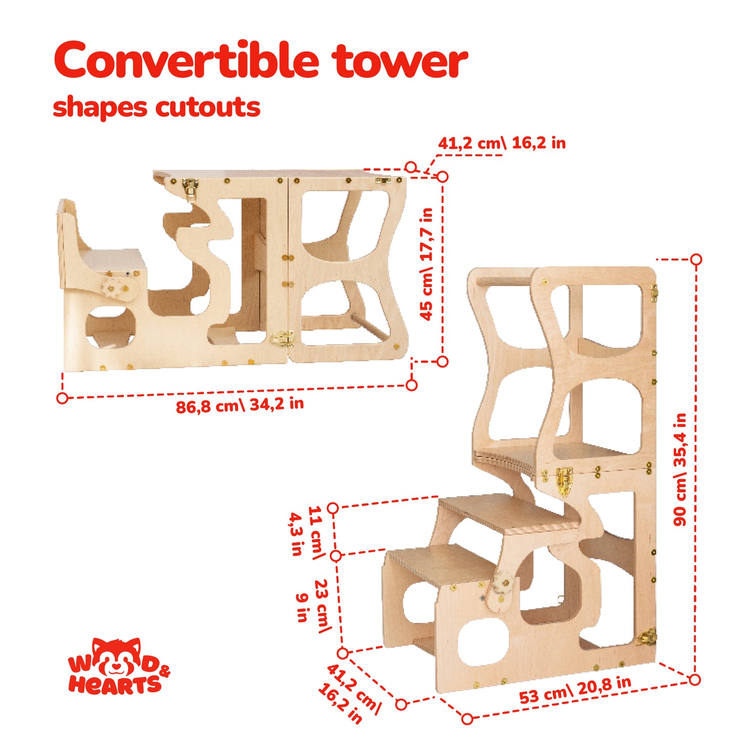 Experience the ultimate convenience with our convertible helping tower, providing your child with the perfect height for every task!