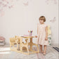 The 2-in-1 learning helper is a clever space-saving solution! Say goodbye to the need for an extra tower alongside your classic table and chair.