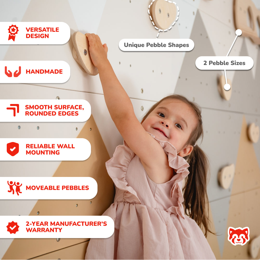 Transform your child's room into an exciting space for play and active training, available every day, at any moment. The compact Indoor Climbing Wall from WoodandHearts is perfect for even the smallest room, and toddlers and preschoolers can practice with ease, requiring no special preparation. It provides an engaging way to stay active while enjoying the comfort of home.