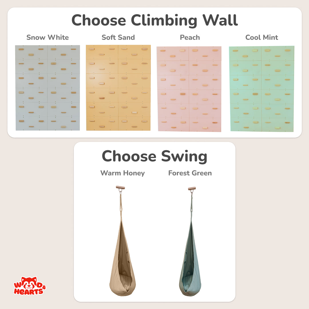 Choose your Rock Climbing Wall panel color: Cool Mint, Peach, Soft Sand, or Snow White