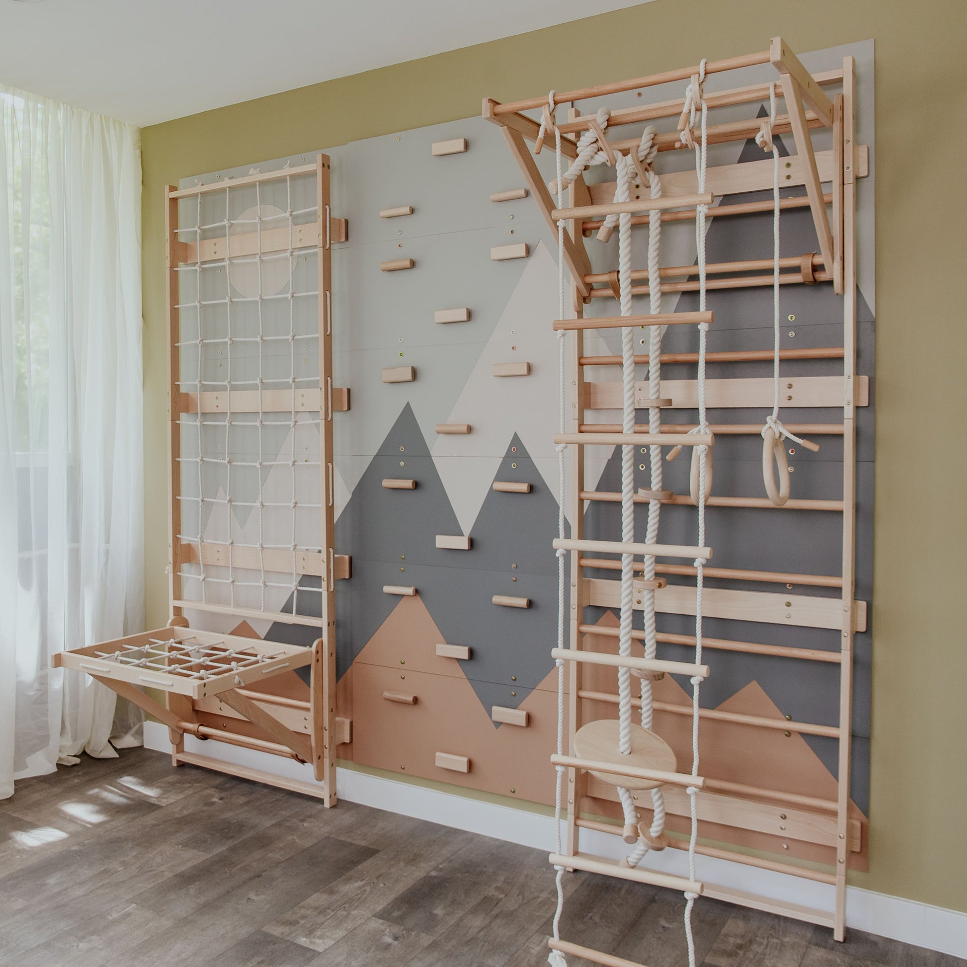 Wood and Hearts 3-in-1 Swedish Ladder Wall Gym for Kids 3+