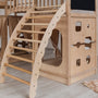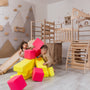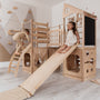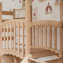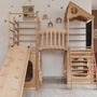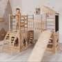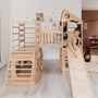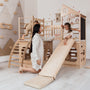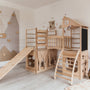 The Large Playground Climber offers endless play, exploration, and learning possibilities. Crafted from high-quality solid beech wood and birch plywood, it prioritizes safety and durability. Eco-friendly practices ensure the use of non-toxic, water-based paints and environmentally friendly varnishes. Meticulous hand-sanding guarantees a safe and healthy play environment.