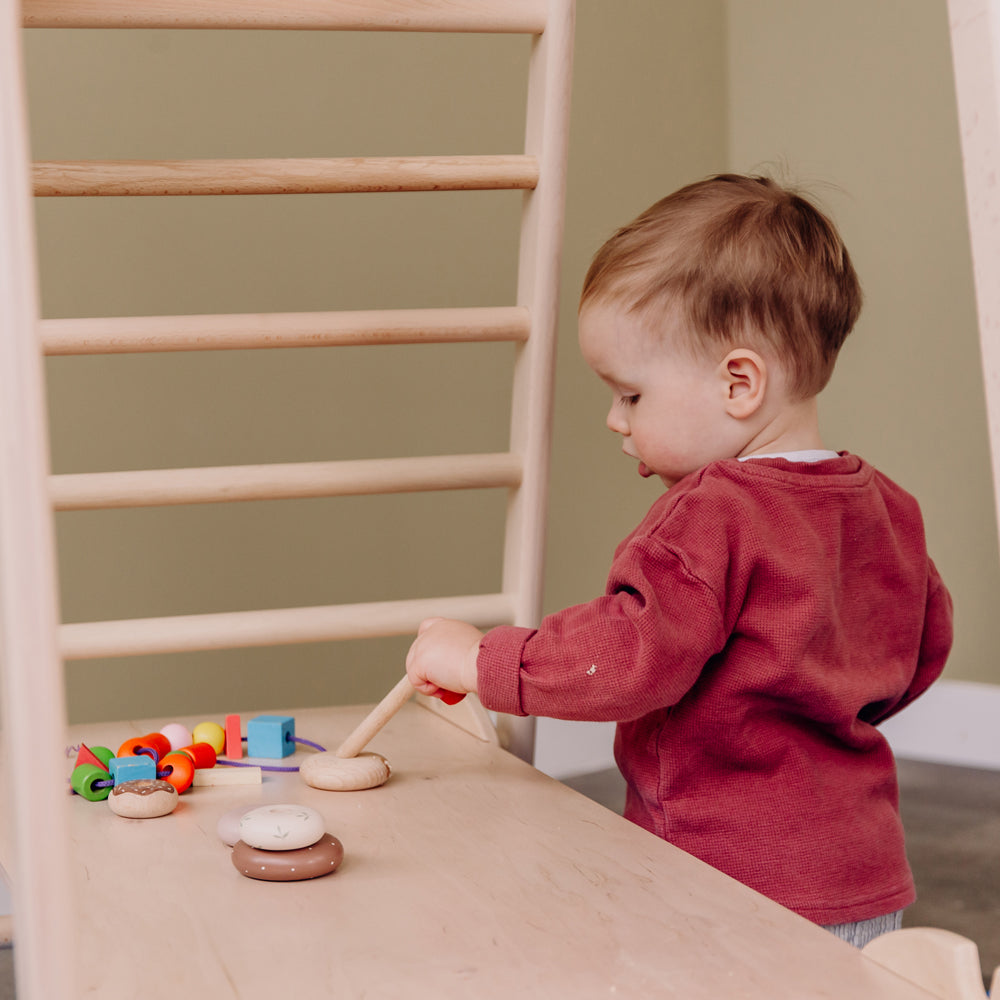 Our toys help children explore the world, develop motor skills, imagination, and self-confidence through play. They naturally become part of the home and everyday routines — without excess noise, plastic, or compromises in quality.