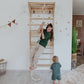 A Kids Climbing Rope accessory with wooden spheres for indoor climbing frames, enhancing strength, balance, and coordination through fun play.
