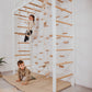 A premium all‑in‑one wooden indoor gym with monkey bars, climbing wall, swings, and mat—designed for active play and developing strength, balance, and confidence.