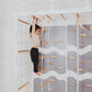 Indoor Rock Wall – a decorative climbing wall with 6 cloud-shaped panels and smooth grips, available in elegant white or gray. Perfect for climbers aged 3 to 10.