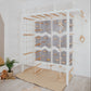 Climbing Monkey Bars – a universal frame with a horizontal bar, ladders in white and natural wood color, suitable for kids aged 3 to 16.