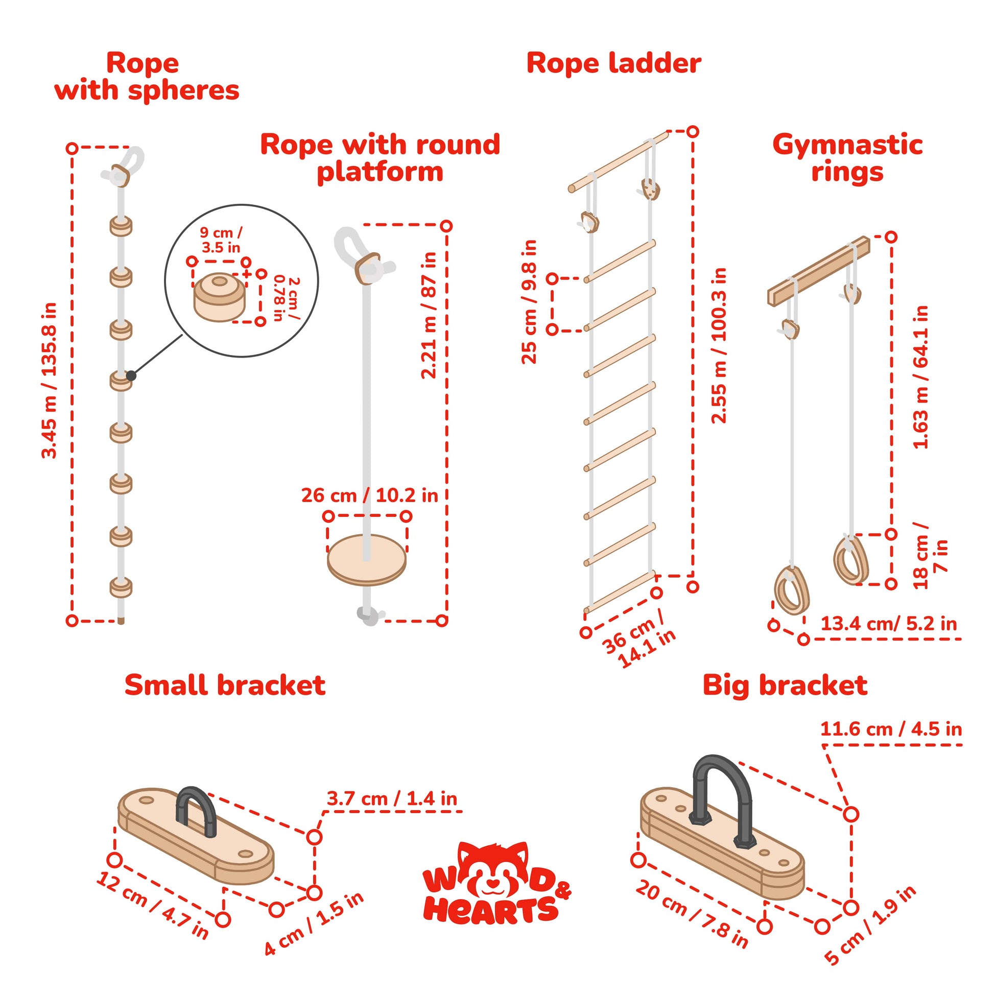 Materials: The climbing panels are made from sustainable birch plywood with non-toxic, water-based finishes, making them safe for children and easy to maintain. The climbing holds for the panel are crafted from solid beech wood, known for its durability and smooth finish, ensuring long-lasting use. The beech wood is also used for monkey bars and rope accessories.