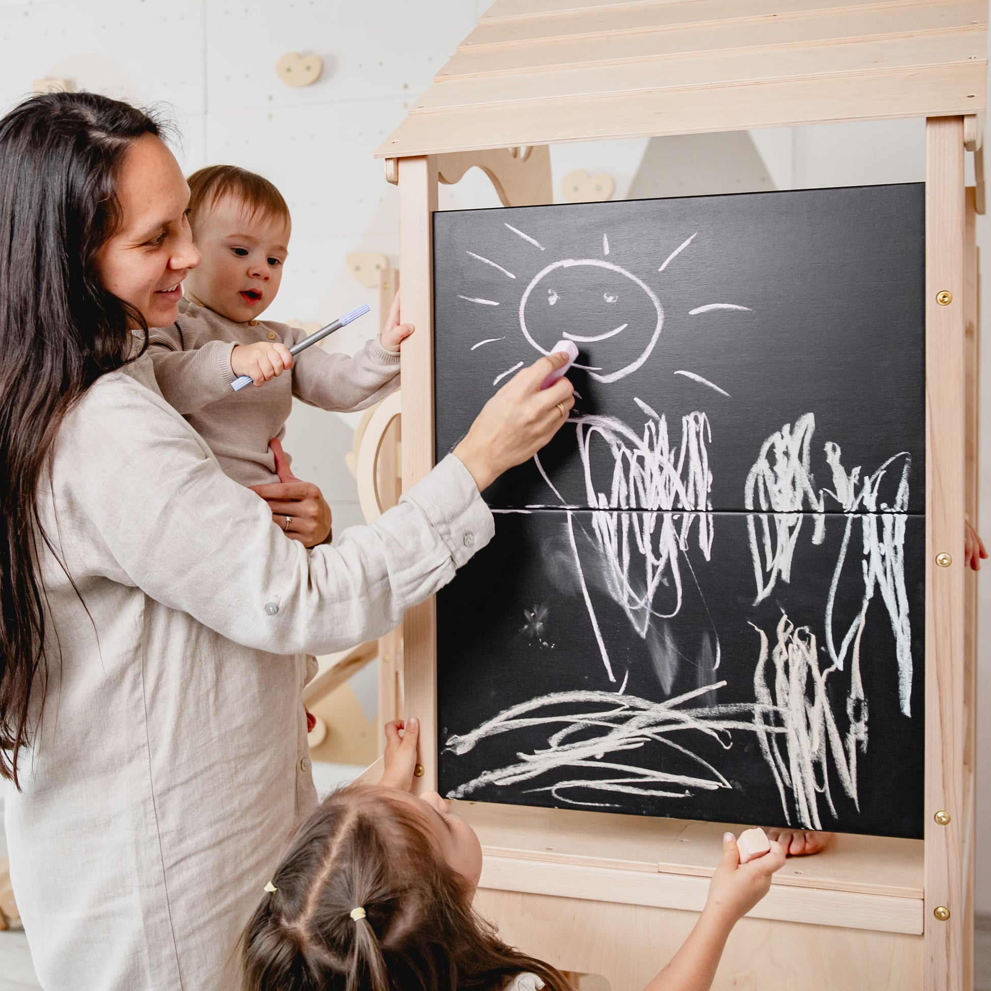 The chalkboard surface is crafted from smooth birch plywood for effortless cleaning and maintenance. You can swiftly wipe away chalk marks or drawings using a damp cloth, maintaining its pristine appearance without hassle.