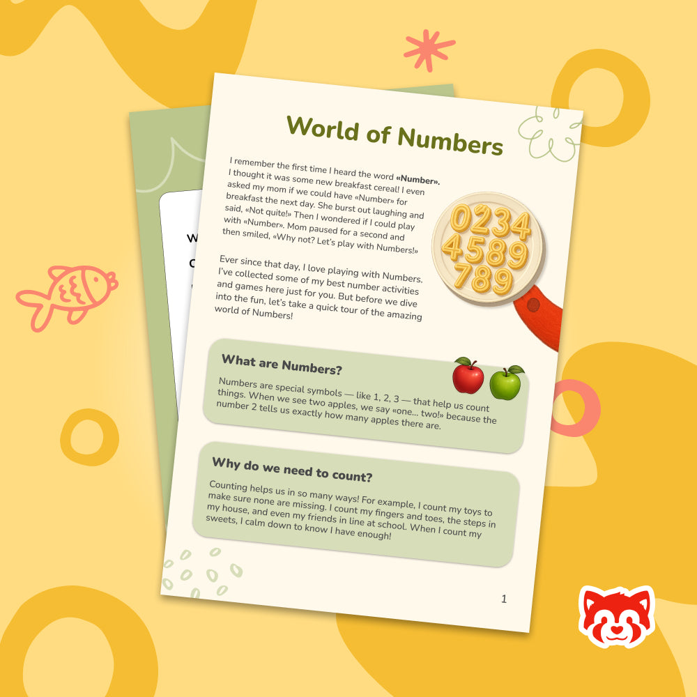 Toddlers and preschoolers will explore numbers alongside Massori the Red Panda — a playful guide who makes learning math feel like an exciting adventure! Massori gently introduces your child to the world of counting and shows how numbers are part of everyday life.