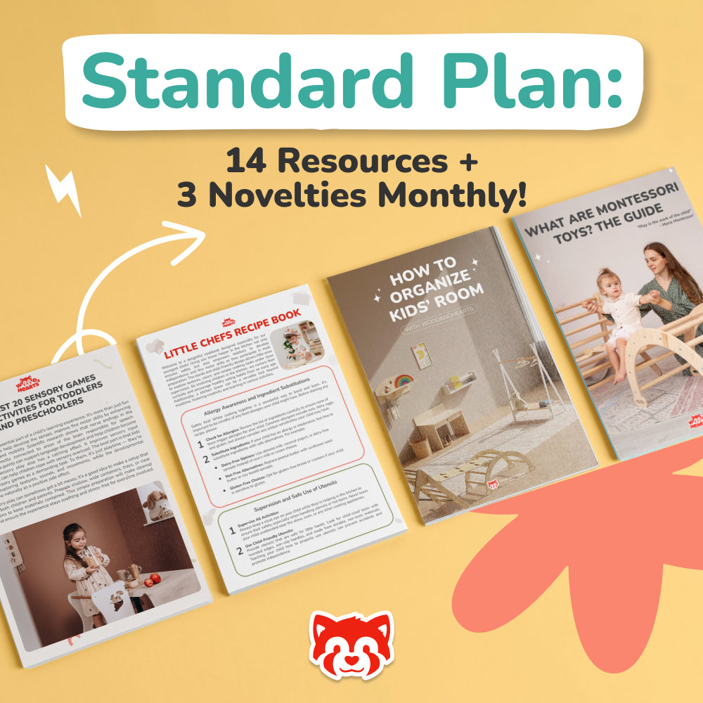 Unlock a world of learning and creativity with our WoodandHearts Club - a tiered membership with different plans. Each level gives you instant access to a library of digital materials—downloadable guides, activity books, printables, and more—designed to support your child’s development and simplify family life.